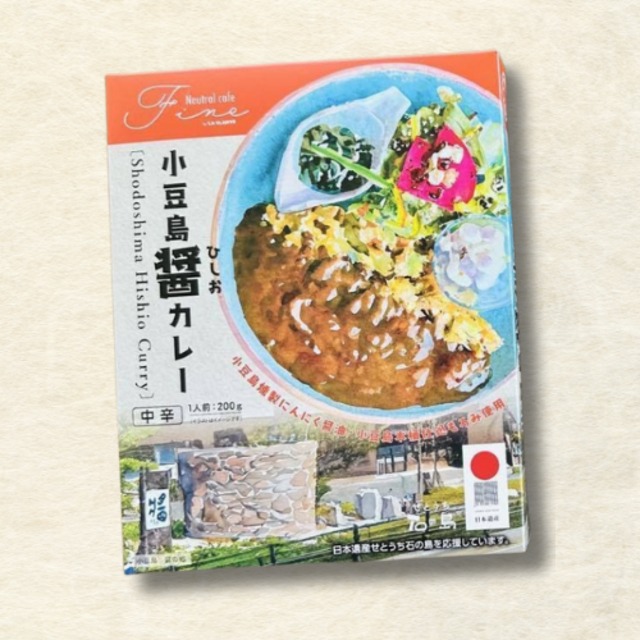 小豆島の豊かな自然が育んだ伝統の味わい 小豆島の特産である醤油ともろみを入れた「小豆島醤カレー」。 独特のコクと風味で、小豆島を訪れる世界中の観光客の方からも大好評。 この「醤カレー」を、小豆島の魅力を伝える一品としたくてレトルトにしました。 しかも手作りです! ぜひ、皆さまに味わっていただきたいです。 製造元:neutral café FINE