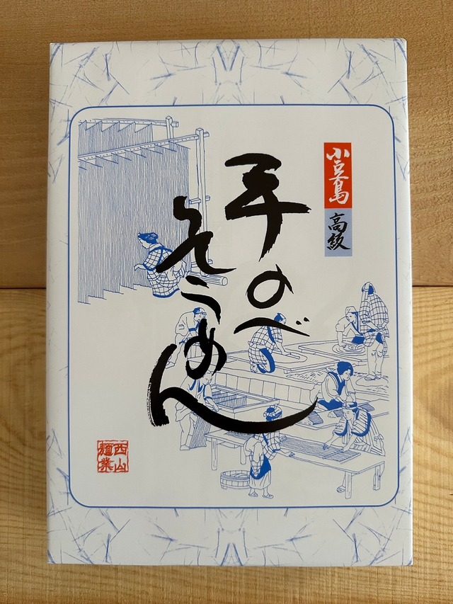 手延べそうめん 10束入り 品名:手延べそうめん 原材料名:小麦粉・食塩・食用植物油(ごま油) 内容量:0.5kg(50g×10束) 箱寸法:タテ×ヨコ×高さ(cm) 20.0×17.6×2.6 保存方法:直射日光及び湿気を避けて保存してください 容器:紙箱入り 製造者:小豆島 手延そうめん館 西山麺業